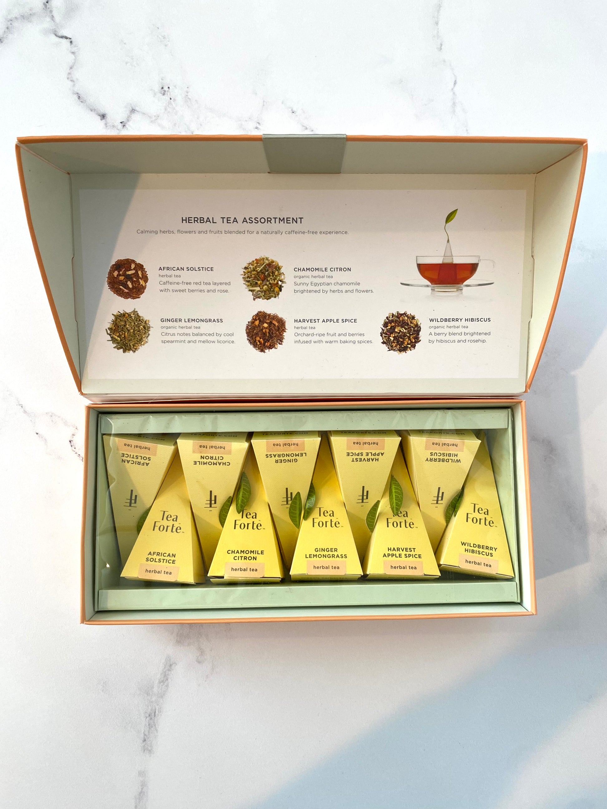 These Tea Forte petite presentation boxes offer a delicious variety of teas. They are available in black, green and herbal teas. Perfect for anyone who wants to try a variety of teas or makes a great a gift!